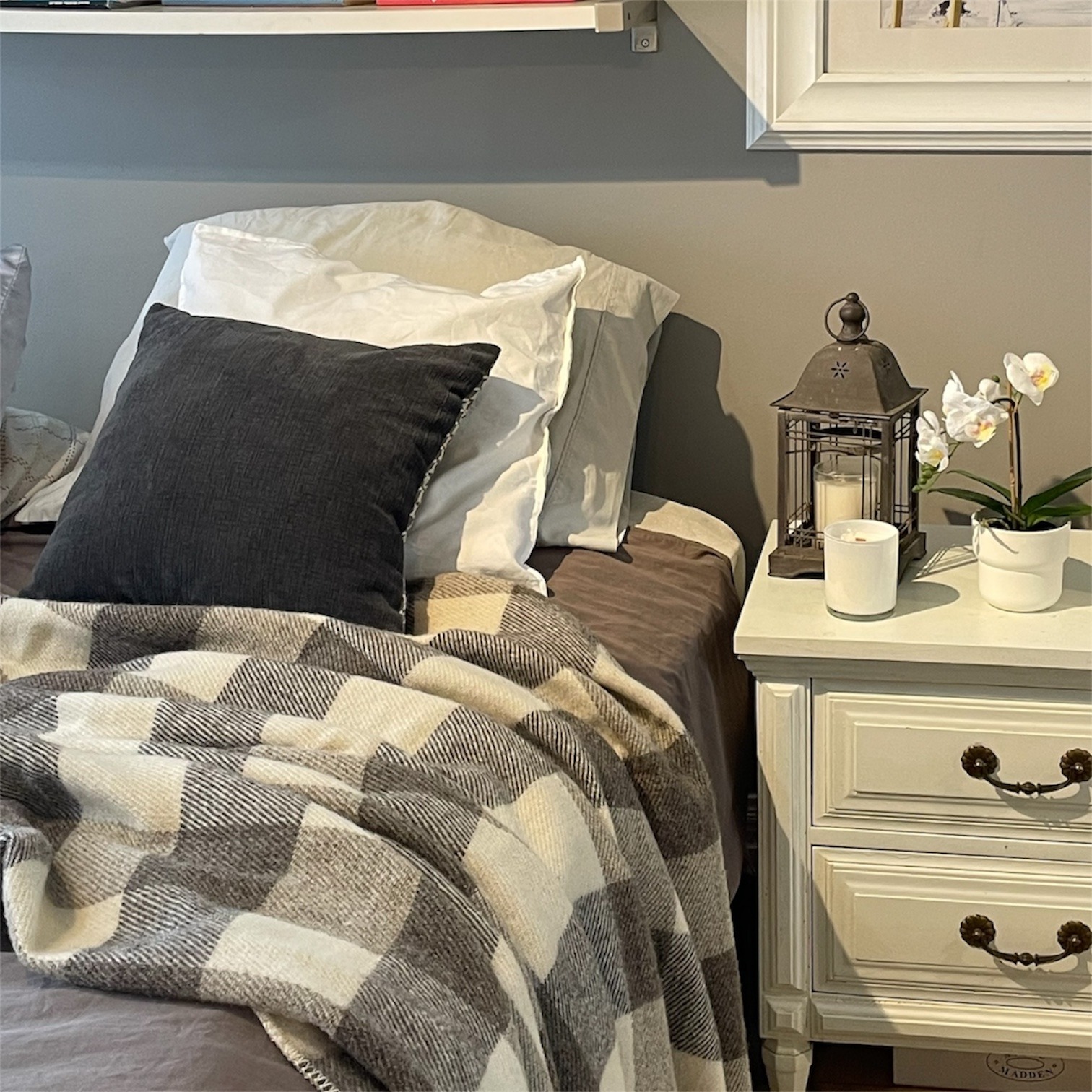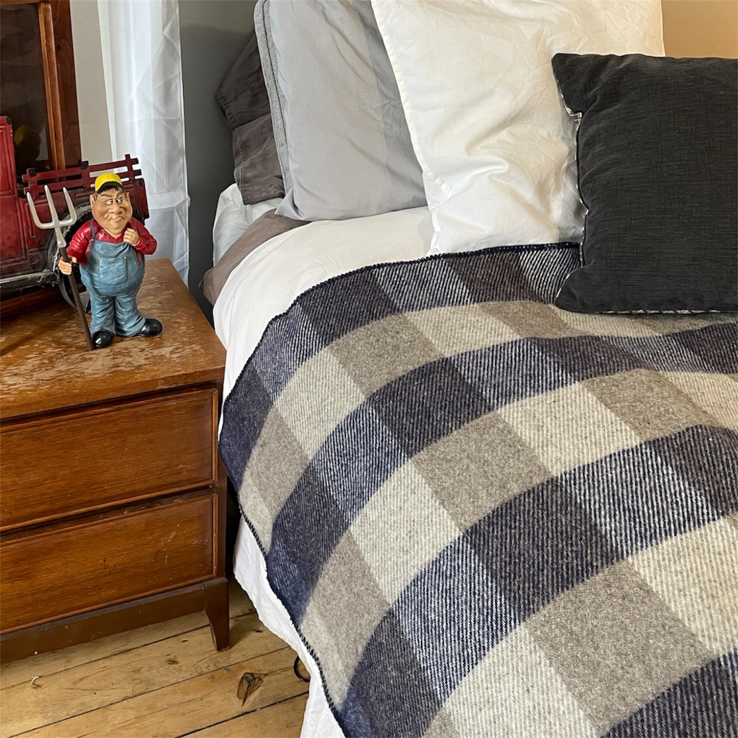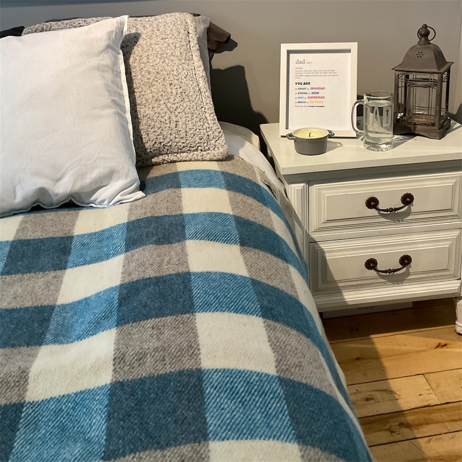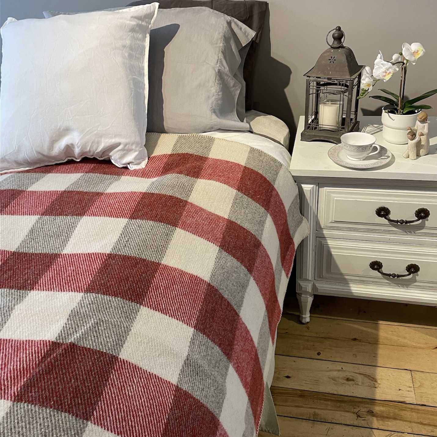 Olive & Natural White Checkered Wool Blanket